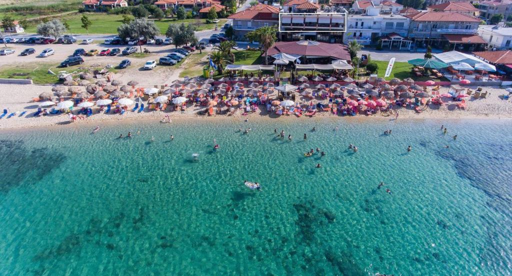 Leži na jednoj od najatraktivnijih plaža Halkdikija, a beli pesak, dugačak plićak i tirkizno more vredni su nešto nezgodnijeg spuštanja do nje.