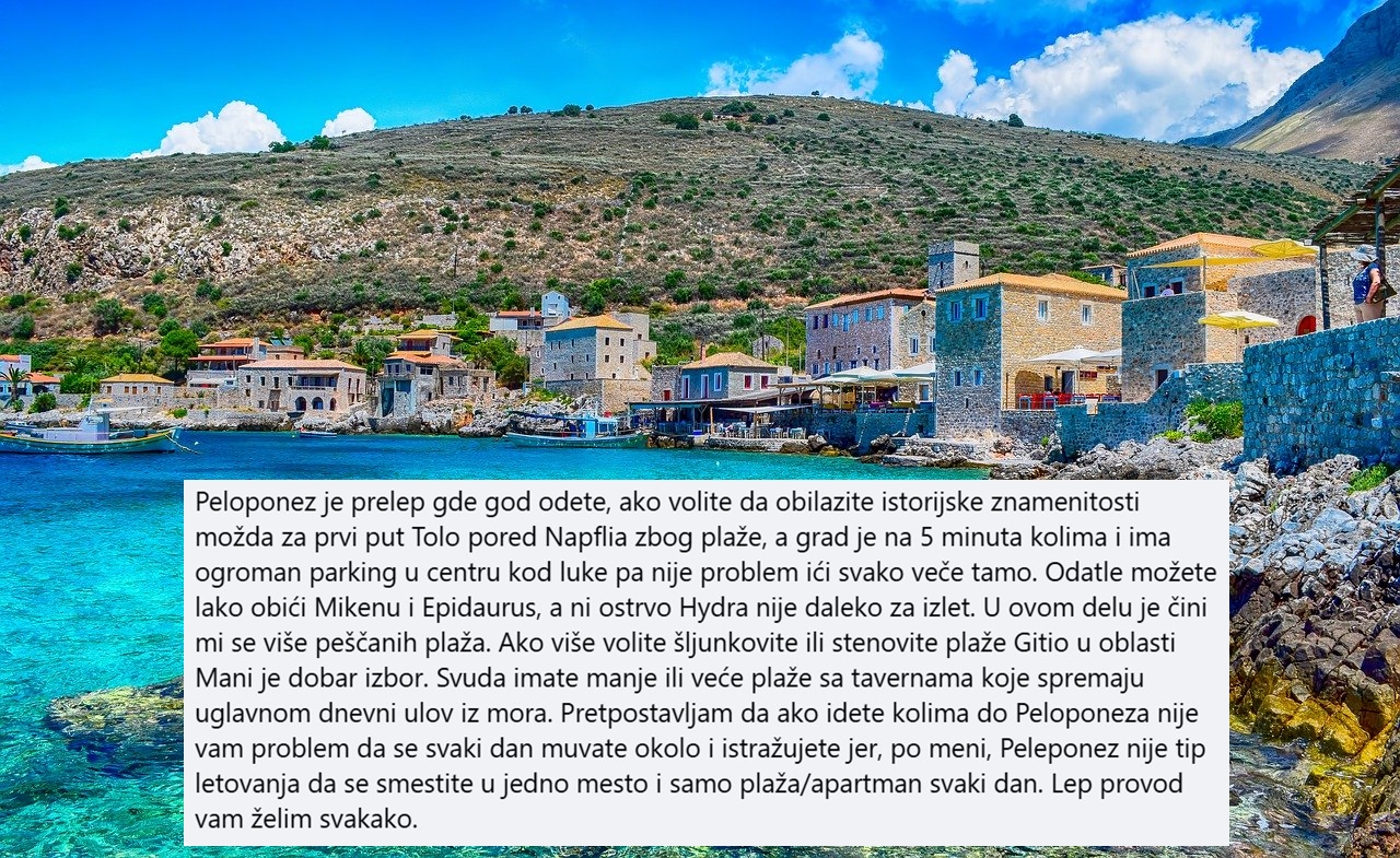 Iskustva turista koji su letovali na Peloponezu gotovo jednoglasno opisuju ovu regiju kao