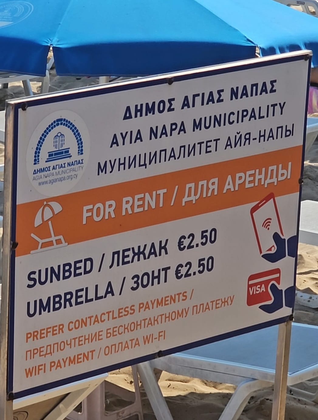 Ležaljke i suncobrane na Kipru ne izdaju beach barovi, već opština. Prihod od iznajmljivanja "sliva" se direktno u opštinsku kasu i koristi za održavanje plaža, javnu higijenu i spasilačke službe – dakle, novac se vraća građanima i turistima kroz kvalitet usluge.Beach barovi raspolažu samo svojim stolovima i stolicama – kao i svaki drugi kafić.