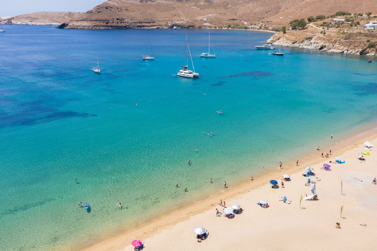 Prema iskustvu turista, posebno treba uživati na plažama ovog mirnog ostrva. Tako je, na primer, plaža Livadi smeštena na obalama istoimenog lučkog grada, u pravcu jugoistoka. Sa desne strane plaže nalaze se raznolike zgrade, dok odmah iza peščane i šljunkovite uvale raste bujno planinsko zelenilo. Ovde možete iznajmiti ležaljke i suncobrane, a pogodnost plaže ogleda se i u tome što se plaža nalazi u blizini taverni i barova.