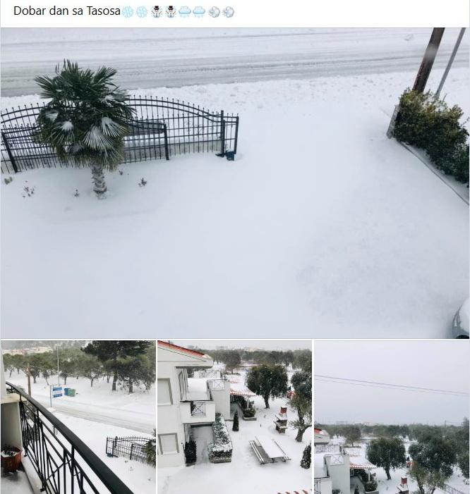 Ipak, prethodnih nekoliko godina na Tasosu je padao sneg tokom januara i februara, kada su temperature bile ispod nule. Poslednji put kada je sneg značajnije padao na Tasosu bio je februar 2022. godine, kada su temperature pale ispod nule, a sneg je prekrio veći deo ostrva.