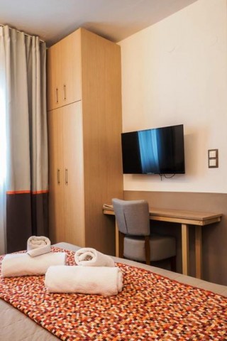 - uključuju: bračni krevet, kupatilo sa tušem, mini frižider (bez kuhinje), klima uređaj, LCD TV, sef, Wi-Fi internet
