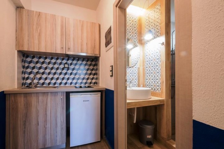 - obuhvataju: bračni krevet, kupatilo sa tušem, čajnu kuhinju opremljenu malim frižiderom i keramičkom pločom, klima uređaj, LCD TV, sef, Wi-Fi internet