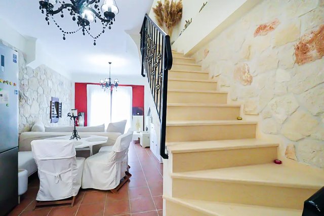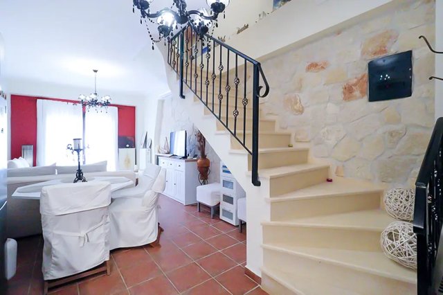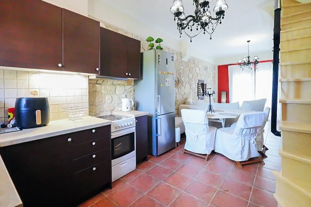 Kuća se sastoji iz dva nivoa povezana stepenicama. Prizemlje je otvorenog tipa i čine ga klimatizovani dnevni boravak sa dve sofe na razvlačenje i kuhinja sa trpezarijom. Kuhinja uključuje veliki frižider sa zamrzivačem, šporet sa rernom, kuvalo za vodu, i aparat za kafu.