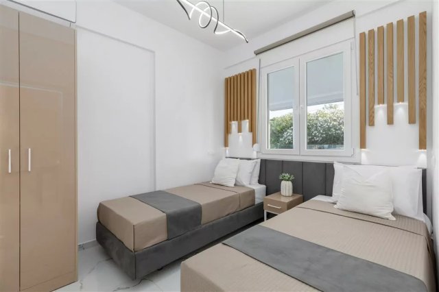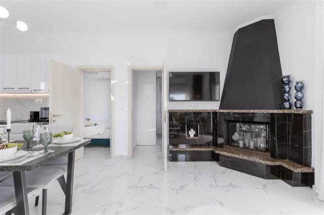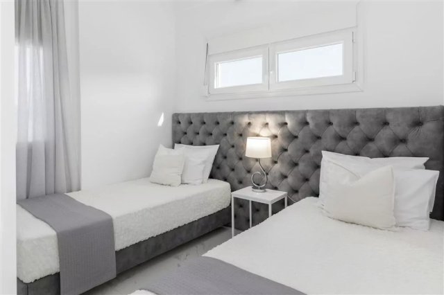 Svaki apartman ima dve spavaće sobe - jednu sa bračnim, i drugu sa dva pojedinačna kreveta. U dnevnom boravku je sofa na razvlačenje.