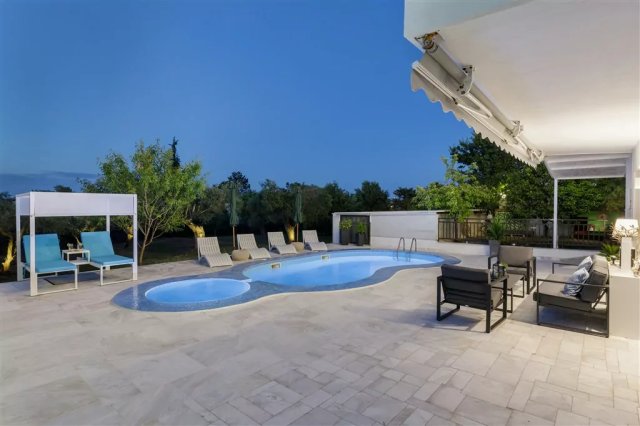 • Terasa, spoljni nameštaj, pogled na bazen i more
