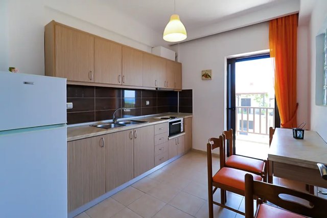 Apartmani su iste opremljenosti - svaki ima kuhinju (veliki frižider sa zamrzivačem, mini šporet sa rernom i tri ringle, kuvalo za vodu), privatno kupatilo sa tušem, i terasu sa spoljnim nameštajem.